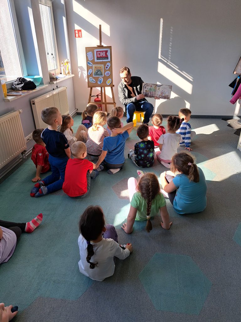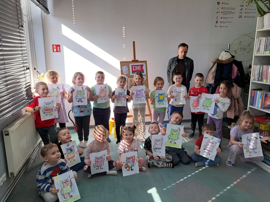 Na spotkaniu DKK 26 lutego z przedszkolną grupą Wiewiórek przenieśliśmy się do świata opowiadania o Pazurzaku – czarodzieju, który nie dbał o higienę i miał bardzo niechlujny wygląd.
