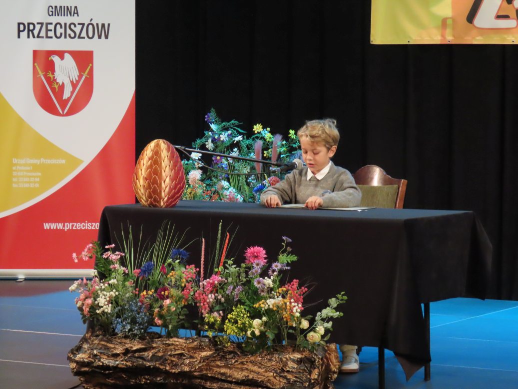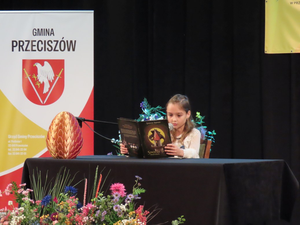 Książka Pawła Gołucha pt. „Smocze jajo”, którą czytano była napisana… wierszem. Tak, poziom trudności był tym większy, ale wszyscy poradzili sobie z nią znakomicie. To zabawna, bardzo pouczająca i wciągająca historia królewny Karoliny, która wraz z Jankiem, rozwiązuje problem ze smokiem. Komisja konkursowa jak zwykle miała bardzo trudne zadanie, by wyłonić zwycięzcę.