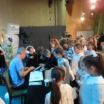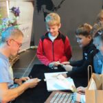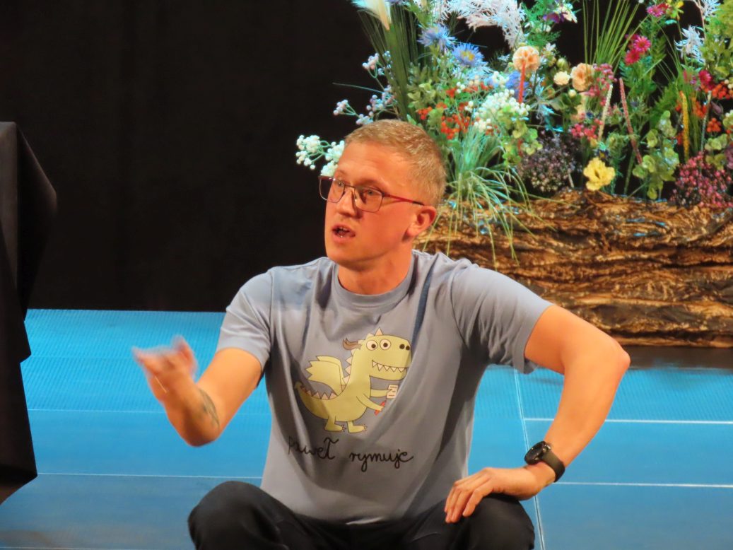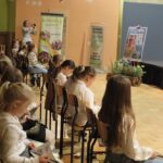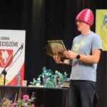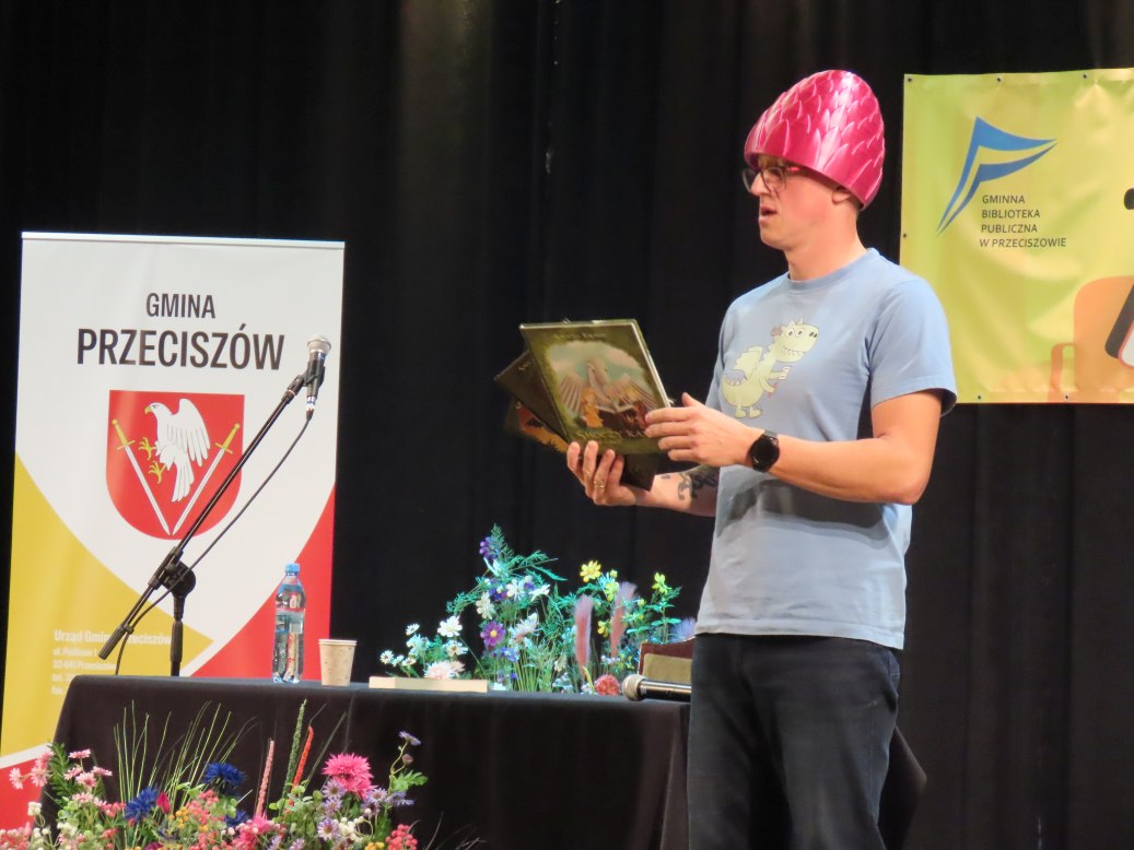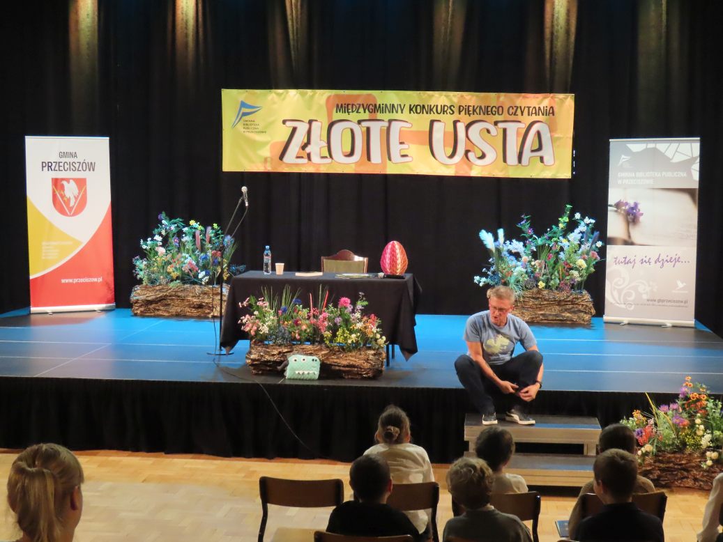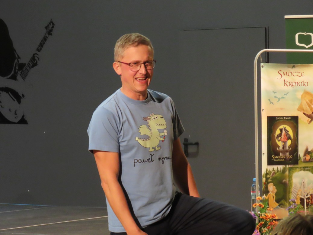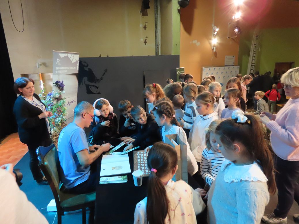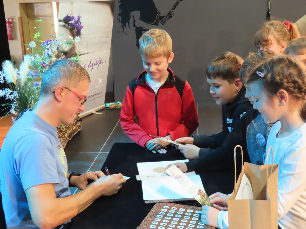 Konkurs zakończyło spotkanie autorskie z Pawłem Gołuchem. Autor ma niesamowite poczucie humoru i energię, które zachwyciły dzieci. Wśród śmiechów i wierszy, które Panu Pawłowi same wpadają do głowy, dowiedzieliśmy się jak powstaje książka; od pomysłu do wydrukowanej pozycji.