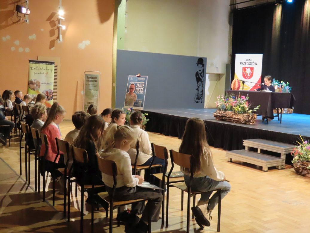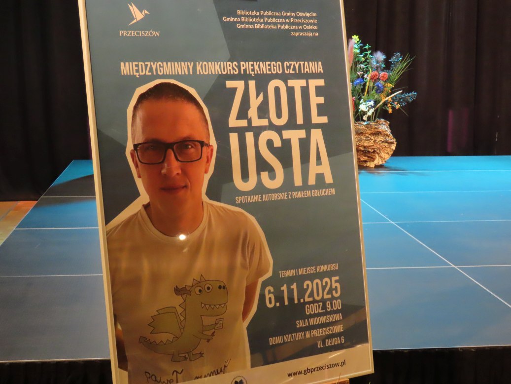 6 listopada mieliśmy okazję po raz kolejny zobaczyć zmagania uczniów z gmin Osiek, Oświęcim i Przeciszów w konkursie głośnego czytania. Wydarzenie to koordynuje Biblioteka Publiczna Gminy Oświęcim a Gminne Centrum Kultury, Czytelnictwa i Sportu w Osieku i Gminna Biblioteka Publiczna w Przeciszowie włączają się do organizacji tego sporego przedsięwzięcia. 24 uczestników z kilkunastu szkół staje w szranki, by zaprezentować najlepszą interpretację czytanego tekstu. Co roku konkurs skierowany jest do innej grupy wiekowej, tegoroczna odbyła się w Przeciszowie i dotyczyła klas I–III.
