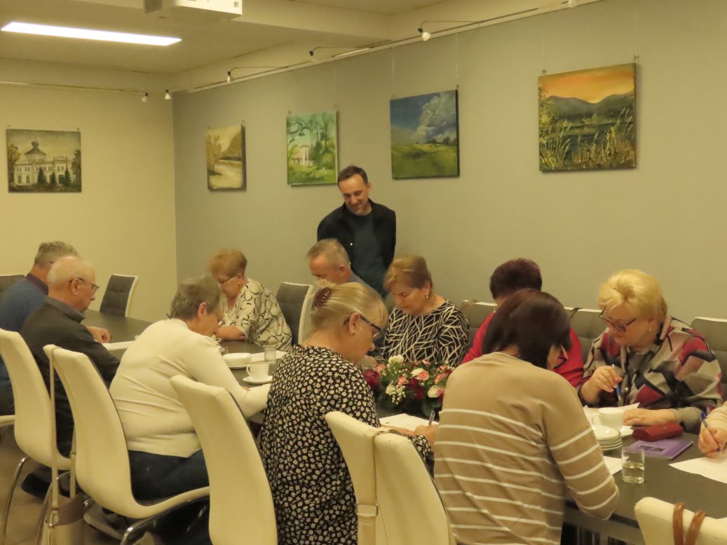 Na pierwszych zajęciach, bardziej organizacyjnych, wysłuchaliśmy oczekiwań, ale przygotowaliśmy także kilka ćwiczeń, by rozruszać szare komórki. Urządziliśmy także muzyczny konkurs, który przyniósł wszystkim dużo radości. Drugie spotkanie, które odbyło się w listopadzie, również było emocjonujące, po wyzwaniach dla mózgu, zajęliśmy się rozrywką i rozegraliśmy, chyba pierwszą w historii Osieka, partię bingo. Później uczestnicy podzielili się na grupy i zagrali w karty. Pośmialiśmy się, pożartowaliśmy i bardzo miło spędziliśmy popołudnie.